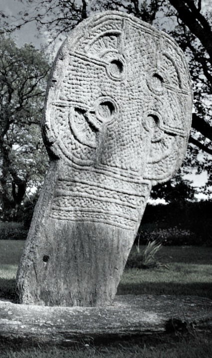 The most spectacular of the nine crosses (no 73) is in it’s original position at the south side of the kirk-yard. It stands at 8 feet high and has a large equal-limbed Celtic wheel-head cross that is almost completely covered in interlacing, knot-work and plait-work designs. This dates from the 5th century AD. All the other cross-slabs stand against the north wall in the roofed area at the east side of the church. The other eight cross-slabs and fragments, numbered 23, 27, 71, 75, 76, 77, 160 and 177, are heavily worn and only faint carvings can be seen; one has been repaired and shows part of a small wheel-cross, and there are two fragments of ‘The Glenroy Cross’. These show Celtic and Norse workmanship and are more recent in date, probably 8th to 10th century AD. You can see the casts of these cross-slabs at the Manx museum in Douglas.