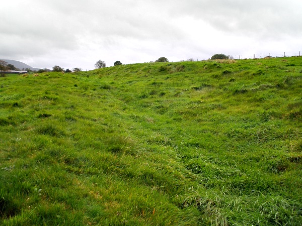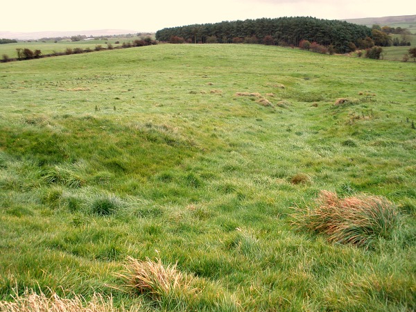 Roughly the earthworks measure 200 feet by 220 feet – about 1 acre. There is a ditch running around the edges of the site with an entrance at the south-eastern side. Some post holes were found during excavations here in 1940. The excavations also discovered cobbled and paved surfaces inside the camp’s enclosure. A number of artifacts were found including a sword, a quern stone, mortaria and some Samian-ware that was typically 4th century in date; and other pottery called grey-ware. Some of the pottery fragments had traces of burning – although no hearth was found. In the 1970s another archaeological dig was carried out here, but no report was compiled.