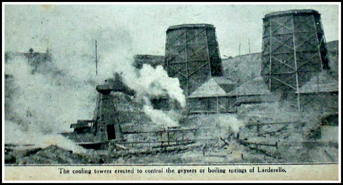 “The Larderello vapour jets and the intelligent industrial use to which they have been put by Italian engineers have attracted the attention  of scientists to the immense possibilities that lie in the systematic and rational utilization of the hidden subterranean forces of Nature.”