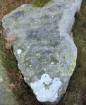 The ‘Fish Stone’ is one of three flat stones here, only the middle one having well-defined pre-historic cup-marks (petroglyphs) on its surface; if there are any on the other two stones they are now faint and worn. There looks to be around 17 cup-markings in the middle and towards the edges of the stone although a some of these may be natural as is the depression at the far side which is due to erosion. Most of the cups are quite small and now fairly worn but they are still visible. There don’t appear to be any rings? But nobody seems to know what these cup-markings are meant to signify – could they be just the idle doodlings of our Bronze Age ancestors, or could they actually be maps showing stars in the night sky, or maybe maps showing burial sites, springs, settlements and other nearby carved rocks; we don’t know with any certainty, so they must therefore remain something of a mystery and ‘an enigma’. If we could travel back in time we could ask the carver of the cups-and-ring markings what he was doing, why he was doing it, and what they were meant to signify. But that’s one for the future!