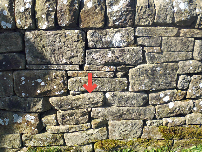 NGR: SD 8852 4806. A “new find” and “an unrecorded carving” in the wall at the side of Greenberfield Lane, near Barnoldswick, Lancashire. It is a tiny cup-mark, but it is very easily missed; and there is another “possible” cup-marked stone in the wall further along the lane on the opposite side. There is a carpark at Green-berfield Locks on the Leeds & Liverpool Canal. So where did these carved stones come from? The tiny cup-marked stone is located just past Greenberfield farm (with the large glacial erratic boulder by the side of the entrance) and the nice farmhouse (with a smaller boulder in front of it). There doesn’t appear to be a ring carving around this tiny cup-mark but, if there is it’s very, very faint, though the more I look at the photo the more I think there might be!