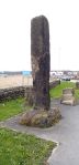 NGR: SE 22127 41831. At the side of the roundabout on the very edge of the Leeds-Bradford Airport at Yeadon, west Yorkshire, stands a rather curious gritstone pillar that looks rather out-of-place being located where it is, but it has, in fact, been moved in order to facilitate its predicament of being in the way of an airport runway extension; the most recent move being in the early 1980s.  This tall, roughly-hewn stoop stone is actually a boundary stone or guide stone whose base is all that remains of the original stoop from the early part of the 19th Century, which had, at that time, stood at Coney Lodge Farm about a ¼ of a mile to the northeast, but was apparently destroyed by lightning. The ‘Long Stoop’ Stone stands beside what looks to be a mounting block! on the verge of the A658 roundabout at the junction of Victoria Avenue (Harrogate Road) and Warren House Lane at the northwestern perifery of the Leeds & Bradford Airport complex, just to the east of Yeadon.