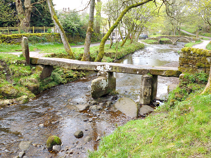 NGR:- SS 86770 32113. The Tarr Steps are an ancient Clapper Bridge that spans the river Barle in Exmoor National Park, about 4 miles northwest of Dulverton and 2½ miles south of Withypool, in Somerset. The slab-stone bridge could be prehistoric in age and date back 3,000 years to the Iron Age; however, some historians now consider the Tarr Steps to be Mediaeval in age and only dating back to the beginning of the 15th Century. The Tarr Steps slab bridge is 135 feet in length from bank to bank though Dr Sweetapple-Horlock (1928) said its length across the river was 180 feet. The stone slabs or clappers are between 6-10 foot long and the larger slabs are estimated to weigh between 1-2 tons; they lie on pillars with one or two slabs on top. Writing in 1924 Sir William Boyd Dawkins was the first to suggest prehistoric origins for the clapper bridge, or the earlier trackway over the ford, that crossed the river Barle, and its links with the Bronze Age round barrows (dating back to 2,500 BC) over to the west on Fyldon Ridge – while another trackway heads northeast from Tarr Steps bridge to the ‘Caratacus Stone’, an inscribed standing stone on Winsford Hill.