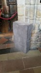 “The gables of the nave have been restored; the ‘crow step’ pattern may therefore be later. The walls are over two feet (61 cm) thick and 23 feet (1 metre) high. Huge quoin-stones, some nearly two feet (61 cm) high and three or four feet (1 metre) long, are set on edge and extend along each wall alternately; hence the name ‘side alternate’ quoins. Many of the stones show character-istic Roman diamond tooling and were doubtless taken from the nearby fort at Binchester. A steeply pitched roof line, perhaps of a porch, can be seen on the west wall. The blocked doorway in the north wall of the chancel led into a small chapel, called a porticus, which was excavated in 1968. The present south porch is later. Just to the east of it, high up in the wall, an original sundial may be seen, decorated with a carving of a serpent.