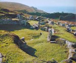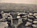 On all sides of you as you walk in the houses of these forgotten folk, with their graves and the large monoliths which are supposed to have marked their temples. As you look at their grey stone huts against the scarred hillsides you leave your own age behind you, and if you were to see a skin-clad, hairy man crawl out from the low door, you would feel that his presence there was more natural than your own.