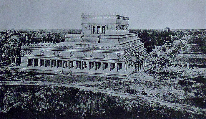 Temple of the Warriors at Chichen Itza, before the restoration work had taken place.