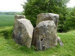 NGR:-TQ 65438 60726. About a ¼ of a mile to the east of St Peter’s & St Paul’s Church, Trottis-cliffe, Kent, stands the megalithic monument known as ‘Coldrum Stones’ or ‘Coldrum Long Barrow’, which dates from the late Neolithic. In the ownership of the National Trust this ancient burial chamber lies at the side of a field, ½ a mile to the south of The Pilgrim’s Way, and over-looking the Medway Gap. The little village of Trottiscliffe which one must go through is known ‘very fondly’ to local people as “Trosley”. The four very large and impressive stones are all that remains of the burial chamber, which would have had a mound over it. In 1910 the structure was excavated and more than 20 individuals were found along with the bones of many animals from around 2,000 BC. At the east side of Trottiscliffe village: drive or walk along Church Lane for ¼ of a mile past the church, then soon turn north on narrow lane to the carpark. Or from the church continue east along Coldrum Lane, then north to the monument. From carpark take footpath east, then south, for a short while to reach Coldrum Stones Ancient Monument, which lies in front of you – more or less.