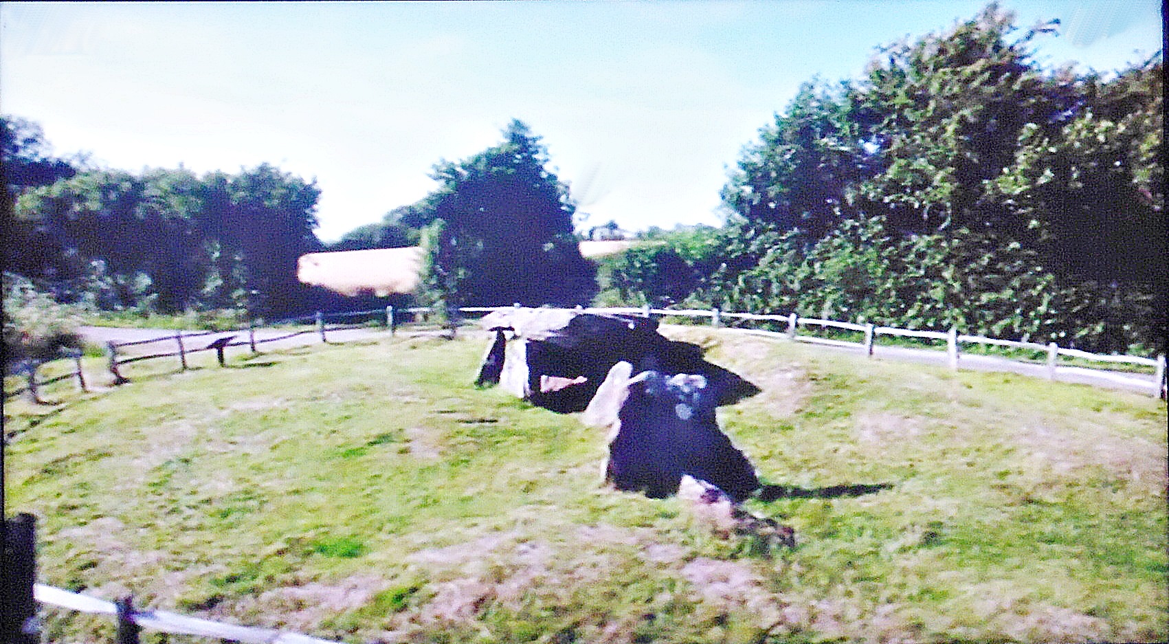 Chris Barber & John Godfrey Williams (1989) say of this site that: “On early Ordnance Survey maps they are marked as Cromlech and as Burial Chamber on later ones.” Bill Anderton (1991) says that: “As part of an outbreak of light phenomena, columns of light were seen issuing from the ground here in 1905. The site stands on the Morchras geological fault.” Christopher Houlder (1978) describes it as a “long cairn” and also adds that: “The cairn lies in an area of some of the finest Iron Age cultivation terraces in the country, visible on the hillside above.” And Jacquetta Hawkes (1975) informs us that: “The Dyffryn long barrow is approached through the iron gates of the village school and will be found alongside the playground not many yards from the highway. Hawkes goes on to say: “The barrow was excavated in the 1960’s revealing a long and complex history.”