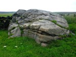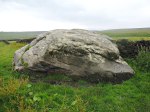NGR: SD 99905 40664. In the middle of a farmer’s field next to a drystone wall at Far Slippery Ford, Newsholme Dean, near Oak-worth, in west Yorkshire, there is a large glacial rock which is locally called William Walker’s Stone. The rock takes its name from a local farmer who had farmed the fields around here. After his passing in 2002 an inscription to his memory was carved onto the bottom of the rockface; there are a few more recently carved inscriptions on the rock. Also of interest: there are several faint cup-marks on the top surface of the rock and a partial ring with cup-markings inside it, but these are now very faint and difficult to make out when the light is not good, although when its raining these carvings are more visible to the eye. There are other cup-marked rocks and boulders 730 metres to the east at Greystones Farm. These erratic rocks and boulders, known as earth-fast, were deposited by the retreating glacier moving southwards 13,000-15,000 years ago; then coming forward in the late Neolithic and early Bronze Ages our distant ancestors carved these cup marks onto the smooth rock faces. From the A6068 at Cowling take Oakworth Old Lane (past the graveyard), Piper Lane, Buckstone Lane, Dick Lane, Long Gate, then Far Slippery Ford Lane to Walker’s Farm (on your left); here take the gated trackway (opposite) for a while until you see the boulder up against the wall in the field over to the SW.