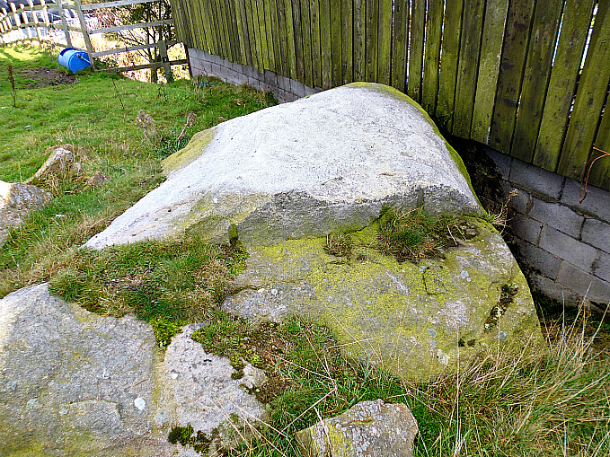 OS Grid Reference: SE 00621 40844. Located beside the large barn of Greystones Farm, on Greystones Lane, is a gritstone rock which has several prehistoric cup-marks. A few other rocks is the same field also appear to have faint cup-marks, and one of these large rocks, locally called Cob Stone, also has “possible” cup-marks. Just above the farm there is an outcrop of gritstone rocks called Greystones Hill. The farm is a ¼ of a mile north of Far Slippery Ford, and the hamlet of Newsholme Dean is about 1 mile to the east on Todley Hall Road. To reach the site travel down Long Gate, then onto Coppy Lane and then Greystones Lane. Walk down the rough farm-track towards Greystones Farm, making sure the wooden gate is secured behind you. Via off the track to the large barn on the left – the cup-marked stone is beside this barn. You can also reach it via the footpath from Long Gate at Far Slippery Ford.