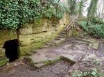 OS Grid Reference: SE 36083 56059. In a secluded wooded area near Grimbald Bridge between Abbey Road and the River Nidd at Knaresborough, North Yorkshire, is St Robert’s Cave & Holy Cross Chapel. Nearby, another chapel, but a 15th century wayside chapel and shrine, hewn out of the rock, which is today dedicated to Our Lady of The Crag. This particular chapel is not how-ever associated with St Robert. About 470m to the north is St Robert’s holy well, a healing spring resorted to by the faithful in times past. Robert Flower (1160-1218) was a hermit who spent many years here – more especially his latter years – but also at a number of other monastic sites across Yorkshire. He was said to have performed some miracles and devoted much of his time to the poor, though he was never canonised by the Church. You can reach St Robert’s Cave from the newer bridge on Wetherby Road (B 6164). Go down the steps onto Abbey Road and a bit further south beside the river is the cave. The medieval Chapel of ‘Our Lady of the Crag’ is ½ a mile to the west at the other end of Abbey Road. St Robert’s Well was located on Monkswell Park Road about a ¼ of a mile north of town.
