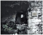 Headley & Meulenkamp (1999) add with regard to this chapel and saying that: “………it is a wayside shrine with beautiful Gothic decoration, immediately above it is Fort Montague, an 18th century folly.” They say of Knaresborough that: “it resembles parts of Derbyshire, not least because of the large number of hermits caves.” Fisher & Pennington (1953) say that: “It was originally a wayside chapel, founded at the beginning of the fifteenth century. It won its unenviable place in the annals of notoriety when Eugene Aram hid in it the body of his victim. Aram was convicted of murder and executed in 1759 many years after his crime, which was given a romantic interest quite undeser-ved by a novel of Bulwer Lytton. The figure is of a knight drawing his sword.”