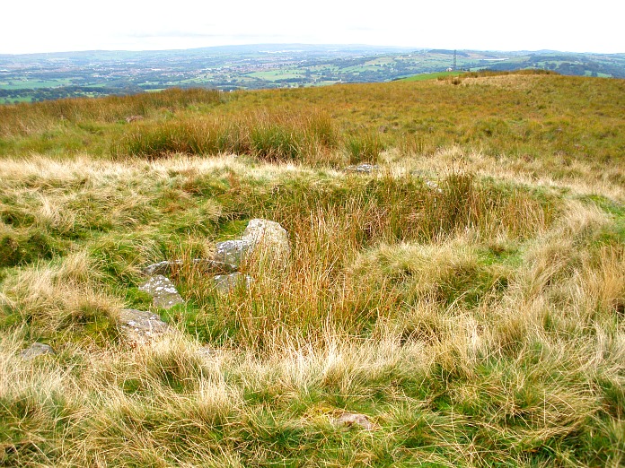 OS grid reference SD 7599 3782. On Wiswell moor above Sabden, in Lancashire, stands the prehistoric site known as Jeppe Knaves Grave, said to be named after a 14th century robber who was buried here, but it is in fact a Bronze-Age cairn that is now much mutilated and in a bit of a ‘sorry state’, although its rounded-shape can still be seen with a hollow at the centre. There are a number of footpaths heading to the site: it can be reached from Wiswell and Spring Woods (Clerk Hill road) on the A671, near Whalley, or from the Nick of Pendle along the road that runs between Sabden and Clitheroe over Pendleton Moor, where there are a number of car parking areas. From here there are at least three footpaths that reach the site – the lower one (an ancient trade route) taking you through Wilkin Heys farm where you will need to ask for permission; the other two paths will get you there but one or two ladder stiles will have to be negotiated! The moor can also be ‘quite boggy’ in times of inclement weather. In his book Pendle Hill and Its Surroundings, by Dr Spencer T. Hall, the author says “From Whalley it will be tolerably easy to find a route up by Wiswell to Pendle Hill”. He also mentions coming up via Padiham, Higham, Sabden, Clitheroe, Chatburn, Downham and Worston.