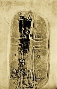 Cemented into the south wall of the church are two stones. One of these shows Christ crucified. He wears a tunic and his arms are out-stretched with his feet in a standing position, head leaning slightly to one side. Tiny holes or pockmarks can be seen in the stone, suggesting that it could be part of a pre-Christian, pagan altar? Next to it, another stone shows signs of damage. This has only half an incised cross, an inscription, and alpha and omega symbols. Both stones are thought to date from between the 7th-10th centuries. The inscription is difficult to read because it is damaged and, also quite tiny Latin lettering. It reads:- HAES: DUR FECIT CRUCEM STAM and when translated is something like ‘Haestar made this cross’. At the top of the stone XPC the Greek Chi Rho and the letters IHC the Greek word for ‘Christ Jesus’. A fourth stone with a carved cross was found in the wall of a barn half a mile further along the Olchon Valley; this is now built into the church’s north wall, while a fifth stone with an inscription was discovered in the valley back in the 1870s but was badly broken during the construction of a road. This stone, or what’s left of it, is now in the south wall.