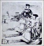 Sketch by John Leitch (1859). Two Victorian ladies having kissed the Blarney Stone.