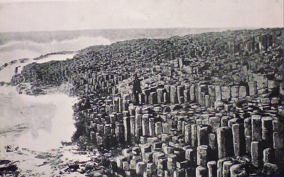 “The giant Fin MacCoul, would be the hero, for he it was who is reputed to have built the Great Causeway across the sea to Scotland, so that his enemy, the Scottish giant, might step over high and dry to get the thrashing he so richly deserved. The Giants’ Amphitheatre, with its perfect tiers of broken columns overlooking the bay, was built by him to amuse his quests, and when he breathed heavily, the pipes of the Giants’ Organ, likewise formed of high columns, played a tune the exact notes of which have presumably been lost to us.